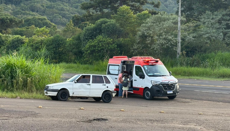 Foto: Adolfo Pegoraro Uma mulher ficou ferida após um acidente de trânsito na manhã desta segunda-feira (6), por volta das